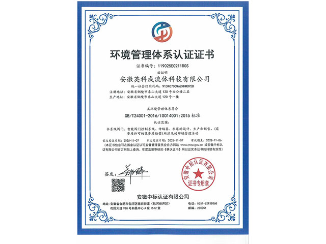 • 環(huán)境管理體系認證證書